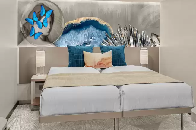 A bordo del Norwegian Prima, las cabinas interiores, con superficies de 14 y 23 m², están diseñadas para ofrecerte un espacio funcional y cómodo. Las más amplias, que pueden acoger hasta cuatro viajeros, son ideales para una estancia en familia o con amigos. Cada alojamiento dispone de camas convertibles, de un baño equipado con una ducha con puerta corredera, así como de múltiples espacios de almacenamiento, garantizándote un viaje agradable.