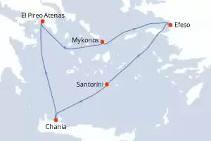 Itinerario : El Pireo Atenas, Mykonos, Efeso, Santoríni, Chania, El Pireo Atenas