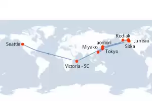 Itinerario : Tokyo, Miyako, aomori, Kodiak, Sitka, Juneau, Wrangell, Ketchikán, Victoria - SC, Seattle