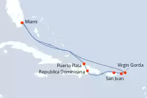 Itinerario : Miami, Puerto Plata, Republica Dominicana, San Juan, Charlotte Amalie, Virgin Gorda, Miami