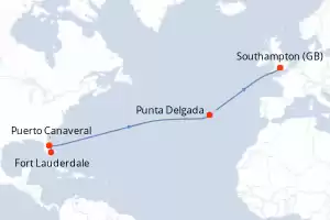 Itinerario : Fort Lauderdale, Puerto Canaveral, Punta Delgada, Southampton