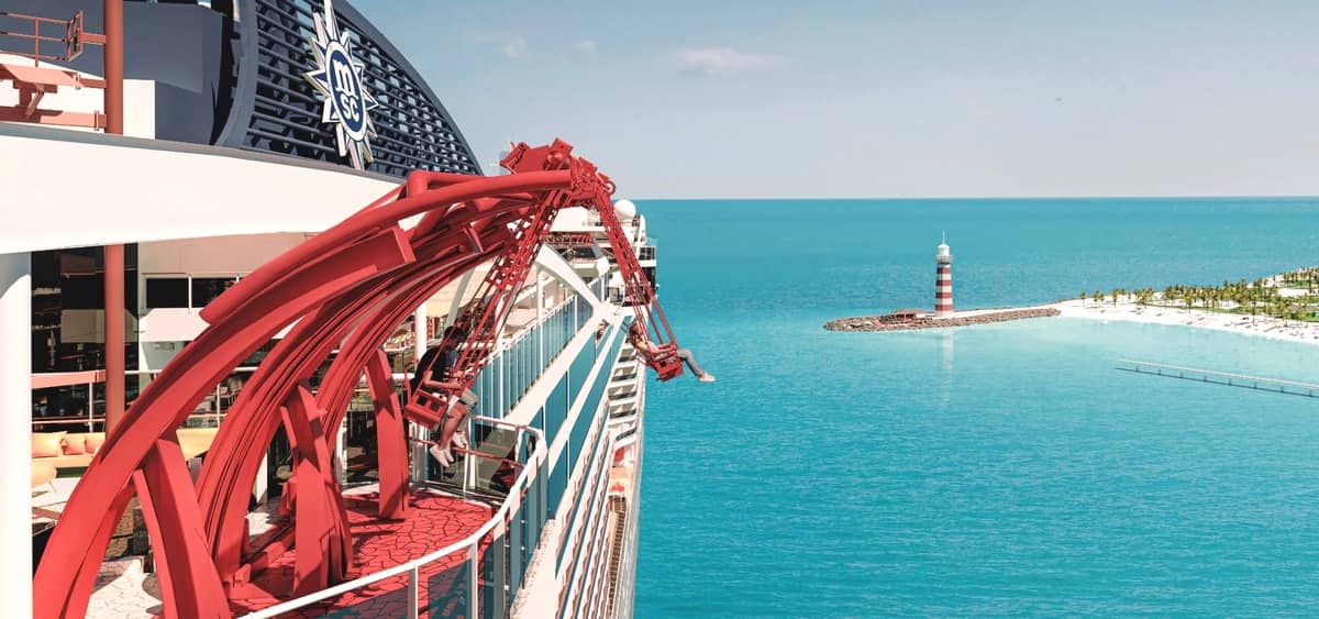 Una novedad en el mar, el Cliffhanger, innovación del MSC World America, es un columpio suspendido sobre el océano. Instalado en el distrito Family Aventura, te propulsa a 50 metros sobre las olas, para una experiencia alucinante, combinando adrenalina y un panorama excepcional.