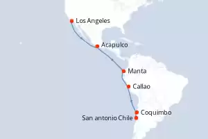 Itinerario : Los Angeles, Acapulco, Manta, Callao, Coquimbo, San antonio Chile