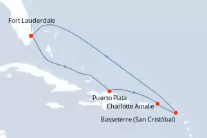 Celebrity Cruises propone numerosas cruceros por el Caribe a bordo del Celebrity Xcel, incluyendo escalas de crucero en las Bahamas, Puerto Rico, las Islas Vírgenes, Saint-Martin, así como en México, Costa Maya o Cozumel. Estos itinerarios son perfectos para explorar fondos marinos excepcionales haciendo snorkeling, relajarte en playas de postal y descubrir la riqueza cultural y gastronómica del Caribe.