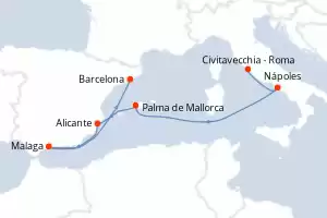 Por otro lado, los cruceros con salida desde Roma (Civitavecchia) incluyen escalas en destinos imprescindibles como Nápoles, lo que te permite descubrir el sitio de Pompeya y la costa de Amalfi, así como La Spezia, ideal para explorar los pintorescos pueblos de las Cinque Terre.