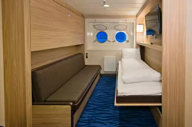 Las cabinas interiores Polar son la opción más económica e incluyen cuarto baño con ducha y WC, camas separadas, cama doble o literas.