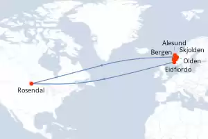 Itinerario : Bergen, Eidfiordo, Stavanger, Rosendal, Skjolden, Alesund, Olden, Bergen