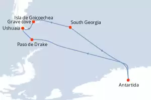 Itinerario : Ushuaia, Grave cove, Isla de Goicoechea, South Georgia, Antartida, Paso de Drake, Ushuaia