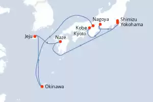 Itinerario : Yokohama, Nagoya, Kobe, Kyoto, Okinawa, Jeju, Naze, Shimizu, Yokohama