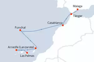 Itinerario : Malaga, Tánger, Casablanca, Funchal, Arrecife (Lanzarote), Santa Cruz de la Palma, Las Palmas
