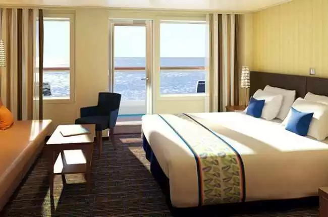 Las suites son aún más espaciosas y confortables. A bordo del Carnival Panorama se despliegan un total de seis suites con balcón privado, cabinas familiares de dos habitaciones, cabinas interiores y camarotes para pasajeros con movilidad reducida.