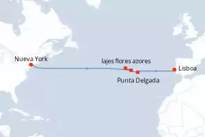 Itinerario : Lisboa, Punta Delgada, lajes flores azores, Bayonne (New Jersey), Lisboa, Punta Delgada, lajes flores azores, Bayonne (New Jersey)