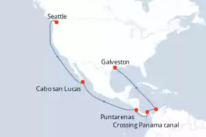 Estados Unidos, Colombia, Panamá, Costa Rica, México Itinerario: Seattle , Cabo san Lucas , Puntarenas , Crossing Panama canal , Cartagena de Indias , Galveston Comidas incluidas Spirit 17 días Camarote estándar Seattle 25/09/2027 desde US$1525 EL PRECIO NO INCLUYE LA PERCEPCIÓN DEL 30% DE AFIP - RG 5463 TARIFA NO REEMBOLSABLE Comidas incluidas Ver las ofertas