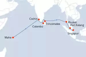 Malasia, Singapur, Seychelles, India, Sri Lanka, Tailandia Itinerario: Singapur , Singapur , Singapur , Singapur , Singapur , Singapur , Port Kelang , Port Kelang , Port Kelang , Phuket , Phuket , Phuket , Trincomalee , Trincomalee , Trincomalee , , , , Colombo , Colombo , Colombo , Cochin , Cochin , Cochin , Cochin , Cochin , Cochin , Mahe , Mahe , Mahe Comidas incluidas Silver Dawn 19 días Suite Singapur 30/03/2026 desde US$6950 EL PRECIO NO INCLUYE LA PERCEPCIÓN DEL 30% DE AFIP - RG 5463 TARIFA NO REEMBOLSABLE Comidas incluidas Ver las ofertas