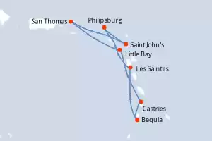 Paises Bajos,Antigua y Barbuda,Estados Unidos,Reino Unido,Santa Lucia,San Vincent y las Granadinas,Francia Itinerario: Philipsburg , Philipsburg , Saint John's , Saint John's , San Thomas , San Thomas , Little Bay , Little Bay , Castries , Castries , Bequia , Bequia , Les Saintes , Les Saintes , Philipsburg , Philipsburg Comidas incluidas Silver shadow 8 días Suite Philipsburg 19/02/2026 desde US$3600 EL PRECIO NO INCLUYE LA PERCEPCIÓN DEL 30% DE AFIP - RG 5463 TARIFA NO REEMBOLSABLE Comidas incluidas Otras fechas : 11 ene. 26 Ver las ofertas