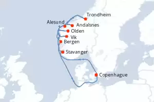 Dinamarca,Noruega Itinerario: Copenhague , Copenhague , Alesund , Alesund , Trondheim , Trondheim , Andalsnes , Andalsnes , Bergen , Bergen , Olden , Olden , Vik , Vik , Haugesund , Haugesund , Copenhague , Copenhague Comidas incluidas Silver Dawn 11 días Suite Copenhague 14/08/2027 desde US$8700 EL PRECIO NO INCLUYE LA PERCEPCIÓN DEL 30% DE AFIP - RG 5463 TARIFA NO REEMBOLSABLE Comidas incluidas Ver las ofertas