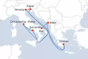 Italia,Eslovenia,Grecia,Montenegro Itinerario: Venecia , Venecia , Koper , Koper , Spetses , Spetses , Bari , Bari , Kotor , Kotor , Sorrento , Sorrento , Civitavecchia - Roma , Civitavecchia - Roma Comidas incluidas Silver Ray 8 días Suite Venecia 26/06/2027 desde US$7100 EL PRECIO NO INCLUYE LA PERCEPCIÓN DEL 30% DE AFIP - RG 5463 TARIFA NO REEMBOLSABLE Comidas incluidas Ver las ofertas
