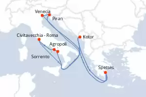 Italia,Eslovenia,Grecia,Montenegro Itinerario: Venecia , Venecia , Piran , Piran , Spetses , Spetses , Kotor , Kotor , Agropoli , Agropoli , Sorrento , Sorrento , Civitavecchia - Roma , Civitavecchia - Roma Comidas incluidas Silver Ray 8 días Suite Venecia 24/07/2027 desde US$6300 EL PRECIO NO INCLUYE LA PERCEPCIÓN DEL 30% DE AFIP - RG 5463 TARIFA NO REEMBOLSABLE Comidas incluidas Ver las ofertas