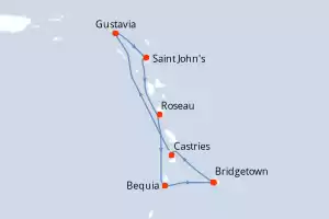 Barbados, San Vincent y las Granadinas, Dominica, Antigua y Barbuda, Santa Lucia, Reino Unido Itinerario: Bridgetown , Castries , Gustavia , Saint John's , Saint John's , Roseau , Bequia , Bridgetown Comidas incluidas Silver Spirit 8 días Suite Bridgetown 28/02/2027 desde US$5500 EL PRECIO NO INCLUYE LA PERCEPCIÓN DEL 30% DE AFIP - RG 5463 TARIFA NO REEMBOLSABLE Comidas incluidas Ver las ofertas