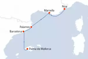Francia, España Itinerario: Palma de Mallorca , Palma de Mallorca , Palma de Mallorca , Barcelona , Barcelona , Barcelona , Palamos , Palamos , Palamos , Marsella , Marsella , Marsella , Niza , Niza , Niza Comidas incluidas Silver shadow 6 días Suite Palma de Mallorca 27/04/2026 desde US$5800 EL PRECIO NO INCLUYE LA PERCEPCIÓN DEL 30% DE AFIP - RG 5463 TARIFA NO REEMBOLSABLE Comidas incluidas Ver las ofertas