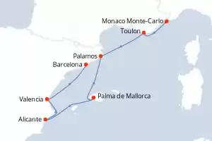 España, Francia, Monaco Itinerario: Monaco Monte-Carlo , Toulon , Palamos , Palma de Mallorca , Alicante , Valencia , Barcelona Comidas incluidas Silver Ray 7 días Suite Monaco Monte-Carlo 30/08/2026 desde US$6000 EL PRECIO NO INCLUYE LA PERCEPCIÓN DEL 30% DE AFIP - RG 5463 TARIFA NO REEMBOLSABLE Comidas incluidas Ver las ofertas