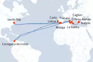 Grecia, Portugal, España, Colombia, Italia, Túnez, Malta Itinerario: El Pireo Atenas , Nafplio , souda Bay , La Valetta , La Valetta , Trapani , Tunez , Cagliari , Cartagena de Indias , Malaga , Malaga , Cadiz , Lisboa , El Pireo Atenas , El Pireo Atenas , Nafplio , Nafplio , souda Bay , souda Bay , La Valetta , La Valetta , La Valetta , La Valetta , Trapani , Trapani , Tunez , Tunez , Cagliari , Cagliari , Cartagena de Indias , Cartagena de Indias , Malaga , Malaga , Malaga , Malaga , Cadiz , Cadiz , Lisboa , Lisboa Comidas incluidas Silver Spirit 16 días Suite El Pireo Atenas 07/11/2026 desde US$9500 EL PRECIO NO INCLUYE LA PERCEPCIÓN DEL 30% DE AFIP - RG 5463 TARIFA NO REEMBOLSABLE Comidas incluidas Ver las ofertas
