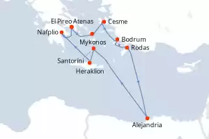 Grecia,Turquía,Egipto Itinerario: El Pireo Atenas , Mykonos , Cesme , Bodrum , Rodas , Alejandria , Santoríni , Heraklion , Nafplio , El Pireo Atenas Comidas incluidas Silver Nova 12 días Suite El Pireo Atenas 26/09/2027 desde US$9900 EL PRECIO NO INCLUYE LA PERCEPCIÓN DEL 30% DE AFIP - RG 5463 TARIFA NO REEMBOLSABLE Comidas incluidas Ver las ofertas
