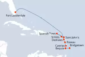 Estados Unidos, Antigua y Barbuda, Francia, Reino Unido, Dominica, Santa Lucia, San Vincent y las Granadinas, Barbados Itinerario: Bridgetown , Bequia , Castries , Roseau , Deshaies , St Kitts , Spanish Town , Saint John's , Fort Lauderdale , Bridgetown , Bridgetown , Bequia , Bequia , Castries , Castries , Roseau , Roseau , Deshaies , Deshaies , St Kitts , St Kitts , Spanish Town , Spanish Town , Saint John's , Saint John's , Fort Lauderdale , Fort Lauderdale Comidas incluidas Silver Spirit 11 días Suite Bridgetown 02/02/2026 desde US$4500 EL PRECIO NO INCLUYE LA PERCEPCIÓN DEL 30% DE AFIP - RG 5463 TARIFA NO REEMBOLSABLE Comidas incluidas Ver las ofertas