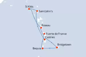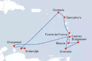 Barbados,San Vincent y las Granadinas,Grenada,Aruba,Reino Unido,Antigua y Barbuda,Francia,Santa Lucia Itinerario: Bridgetown , Bridgetown , Bequia , Bequia , Grenada , Grenada , Willemstad(Curaçao) , Willemstad(Curaçao) , Oranjestad (Aruba) , Oranjestad (Aruba) , Gustavia , Gustavia , Saint John's , Saint John's , Fort-de-France , Fort-de-France , Castries , Castries , Bridgetown , Bridgetown Comidas incluidas Silver Spirit 12 días Suite Bridgetown 29/02/2028 desde US$6100 EL PRECIO NO INCLUYE LA PERCEPCIÓN DEL 30% DE AFIP - RG 5463 TARIFA NO REEMBOLSABLE Comidas incluidas Ver las ofertas