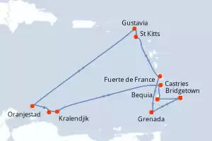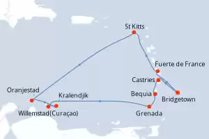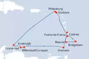 Barbados,Santa Lucia,San Vincent y las Granadinas,Grenada,Paises Bajos,Aruba,Antigua y Barbuda,Francia Itinerario: Bridgetown , Castries , Bequia , Grenada , Willemstad(Curaçao) , Kralendjik , Oranjestad (Aruba) , St Kitts , Fort-de-France , Bridgetown Comidas incluidas Silver Spirit 12 días Suite Bridgetown 17/12/2027 desde US$6300 EL PRECIO NO INCLUYE LA PERCEPCIÓN DEL 30% DE AFIP - RG 5463 TARIFA NO REEMBOLSABLE Comidas incluidas Ver las ofertas