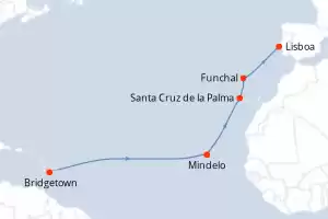 España, Cabo Verde, Barbados, Portugal Itinerario: Bridgetown , Bridgetown , Bridgetown , Mindelo , Mindelo , Mindelo , Santa Cruz de la Palma , Santa Cruz de la Palma , Santa Cruz de la Palma , Funchal , Funchal , Funchal , Funchal , Funchal , Funchal , Lisboa , Lisboa , Lisboa Comidas incluidas Silver Spirit 14 días Suite Bridgetown 02/03/2026 desde US$3850 EL PRECIO NO INCLUYE LA PERCEPCIÓN DEL 30% DE AFIP - RG 5463 TARIFA NO REEMBOLSABLE Comidas incluidas Ver las ofertas