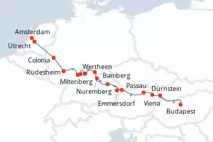 Alemania, Paises Bajos Itinerario: Amsterdam , Amsterdam , Utrecht , Colonia , Rudesheim , Miltenberg , Wertheim , Würzburg , Bamberg , Nuremberg Comidas incluidas Amadeus Queen 8 días Suite Amsterdam 10/05/2026 desde US$4195 EL PRECIO NO INCLUYE LA PERCEPCIÓN DEL 30% DE AFIP - RG 5463 TARIFA NO REEMBOLSABLE Comidas incluidas Ver las ofertas