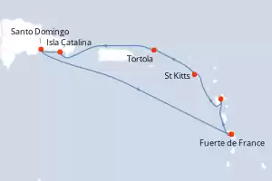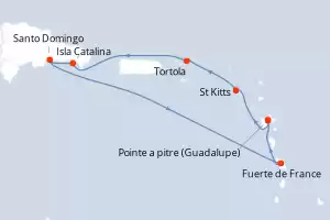 Rep. Dominicana, Antillas Itinerario: Santo Domingo , Isla Catalina , Fort-de-France , Pointe a pitre (Guadalupe) , Philipsburg , St Kitts , Santo Domingo Comidas incluidas Costa Fascinosa 8 días Camarote estándar Santo Domingo 15/12/2025 desde US$576 EL PRECIO NO INCLUYE LA PERCEPCIÓN DEL 30% DE AFIP - RG 5463 TARIFA NO REEMBOLSABLE Comidas incluidas Ver las ofertas
