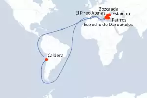 Splendeurs antiques de mer Égée Itinerario: Estambul , Bozcaada , Estrecho de Dardanelos , Patmos , Symi , Amorgos , Caldera , Paros , Adamas , Hidra , El Pireo Atenas Comidas incluidas Le Boreal 9 días Camarote exterior Estambul 02/07/2026 desde US$6343 EL PRECIO NO INCLUYE LA PERCEPCIÓN DEL 30% DE AFIP - RG 5463 TARIFA NO REEMBOLSABLE Comidas incluidas Ver las ofertas