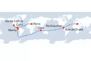 Côte pacifique du Costa Rica Itinerario: Paros , Baie de Drake , Rio Esquinas , Port Mathurin(ile Rodrigues/ Maurice) , Coco , Manta , Curú , Isla de Cedros , Paros Comidas incluidas Le Bellot 8 días Camarote balcón Paros 28/12/2026 desde US$6008 EL PRECIO NO INCLUYE LA PERCEPCIÓN DEL 30% DE AFIP - RG 5463 TARIFA NO REEMBOLSABLE Comidas incluidas Otras fechas : 1 dic. 26 Ver las ofertas