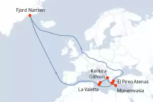 Cités antiques de Méditerranée Itinerario: El Pireo Atenas , Fjord Nansen , Monemvasia , Heraklion , Githion , Kerkira , , Siracusa ( Sicilia) , La Valetta Comidas incluidas Le Champlain 9 días Camarote balcón El Pireo Atenas 08/11/2026 desde US$6856 EL PRECIO NO INCLUYE LA PERCEPCIÓN DEL 30% DE AFIP - RG 5463 TARIFA NO REEMBOLSABLE Comidas incluidas Ver las ofertas