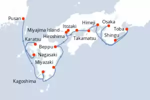 Japón Itinerario: Osaka , Toba , Shingu , Himeji , Takamatsu , Itozaki , Hiroshima , Miyajima Island , Beppu , Miyazaki , Kagoshima , Karatsu , Nagasaki , Pusan Comidas incluidas Le Soleal 13 días Camarote exterior Osaka 14/03/2027 desde US$13214 EL PRECIO NO INCLUYE LA PERCEPCIÓN DEL 30% DE AFIP - RG 5463 TARIFA NO REEMBOLSABLE Comidas incluidas Ver las ofertas