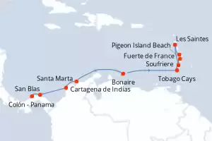 Francia, Santa Lucia, San Vincent y las Granadinas, Paises Bajos, Colombia, Panamá Itinerario: Colón - Panama , San Blas , Cartagena de Indias , Santa Marta , Bonaire , Tobago Cays , Pigeon Island Beach , Soufriere , Les Saintes , Fort-de-France Comidas incluidas Le Laperouse 11 días Camarote balcón Colón - Panama 12/03/2027 desde US$6460 EL PRECIO NO INCLUYE LA PERCEPCIÓN DEL 30% DE AFIP - RG 5463 TARIFA NO REEMBOLSABLE Comidas incluidas Ver las ofertas