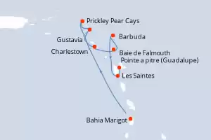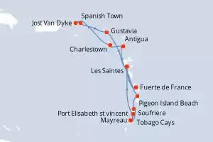 San Vincent y las Granadinas, Santa Lucia, Antigua y Barbuda, Francia, Reino Unido Itinerario: Fort-de-France , Antigua , Charlestown , Jost Van Dyke , Spanish Town , Gustavia , Les Saintes , Pigeon Island Beach , Soufriere , Mayreau , Tobago Cays , Port Elisabeth st vincent , Les Saintes , Fort-de-France Comidas incluidas Le Laperouse 13 días Camarote balcón Fort-de-France 22/03/2027 desde US$8573 EL PRECIO NO INCLUYE LA PERCEPCIÓN DEL 30% DE AFIP - RG 5463 TARIFA NO REEMBOLSABLE Comidas incluidas Ver las ofertas