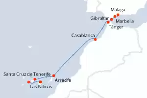 Canaries, Maroc et péninsule ibérique Itinerario: Las Palmas , San Sebastian de la gomera , Santa Cruz de Tenerife , Arrecife , Casablanca , Tánger , Gibraltar , Marbella , Malaga , Malaga Comidas incluidas Le Dumont d Urville 11 días Camarote balcón Las Palmas 25/03/2027 desde US$5786 EL PRECIO NO INCLUYE LA PERCEPCIÓN DEL 30% DE AFIP - RG 5463 TARIFA NO REEMBOLSABLE Comidas incluidas Ver las ofertas