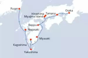 Japón Itinerario: Osaka , Tamano , Miyajima Island , Hiroshima , Beppu , Miyazaki , Kagoshima , Yakushima , Nagasaki , Pusan Comidas incluidas Le Soleal 9 días Camarote exterior Osaka 16/03/2026 desde US$8798 EL PRECIO NO INCLUYE LA PERCEPCIÓN DEL 30% DE AFIP - RG 5463 TARIFA NO REEMBOLSABLE Comidas incluidas Ver las ofertas