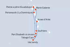 Les îles du Vent à fleur d'eau Itinerario: Pointe a pitre (Guadalupe) , Gran Ansa , Tobago Cays , Isla Sandy , Port Elisabeth st vincent , Soufriere , Soufriere , Portsmouth ( La Dominique) , Soufriere , Portsmouth ( La Dominique) , Soufriere , Portsmouth ( La Dominique) , Soufriere , Portsmouth ( La Dominique) , Soufriere , Portsmouth ( La Dominique) , Marie Galante , Marie Galante , Marie Galante , Marie Galante , Marie Galante , Pointe a pitre (Guadalupe) , Pointe a pitre (Guadalupe) , Pointe a pitre (Guadalupe) , Pointe a pitre (Guadalupe) , Pointe a pitre (Guadalupe) Comidas incluidas Le Ponant 8 días Suite Pointe a pitre (Guadalupe) 28/03/2026 desde US$13698 EL PRECIO NO INCLUYE LA PERCEPCIÓN DEL 30% DE AFIP - RG 5463 TARIFA NO REEMBOLSABLE Comidas incluidas Otras fechas : 31 ene. 26 28 feb. 26 Ver las ofertas