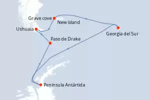 La grande boucle australe Itinerario: Ushuaia , Isla de Goicoechea , Grave cove , Georgia del Sur , Georgia del Sur , Georgia del Sur , Peninsula Antártida , Peninsula Antártida , Peninsula Antártida , Peninsula Antártida , Paso de Drake , Paso de Drake , Ushuaia Comidas incluidas L Austral 18 días Camarote balcón Ushuaia 13/12/2025 desde US$27297 EL PRECIO NO INCLUYE LA PERCEPCIÓN DEL 30% DE AFIP - RG 5463 TARIFA NO REEMBOLSABLE Comidas incluidas Ver las ofertas
