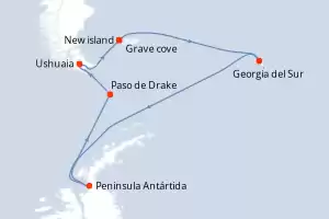 Antártico, Argentina Itinerario: Ushuaia , Paso de Drake , Paso de Drake , Peninsula Antártida , Peninsula Antártida , Peninsula Antártida , Peninsula Antártida , Peninsula Antártida , Peninsula Antártida , Paso de Drake , Paso de Drake , Ushuaia Comidas incluidas L Austral 11 días Camarote exterior Ushuaia 18/12/2026 desde US$15062 EL PRECIO NO INCLUYE LA PERCEPCIÓN DEL 30% DE AFIP - RG 5463 TARIFA NO REEMBOLSABLE Comidas incluidas Ver las ofertas
