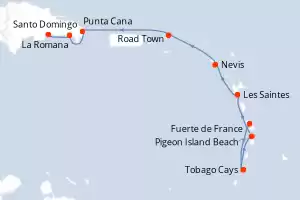 San Vincent y las Granadinas, Francia, República Dominicana, Trinidad y Tobago, Reino Unido, Santa Lucia Itinerario: Fort-de-France , Tobago Cays , Pigeon Island Beach , Les Saintes , Nevis , Road Town , Punta Cana , La Romana , La Romana , Santo Domingo Comidas incluidas Le Bellot 11 días Camarote balcón Fort-de-France 09/01/2026 desde US$10664 EL PRECIO NO INCLUYE LA PERCEPCIÓN DEL 30% DE AFIP - RG 5463 TARIFA NO REEMBOLSABLE Comidas incluidas Ver las ofertas