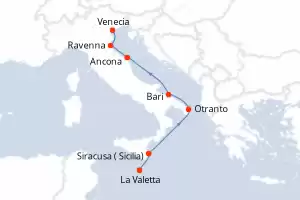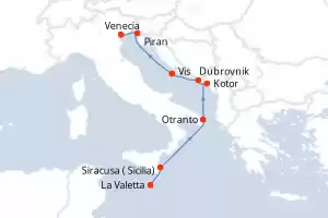 Malta, Italia Itinerario: La Valetta , Siracusa ( Sicilia) , Otranto , Bari , Ancona , Ravenna , Venecia , Venecia , Venecia Comidas incluidas Le Bougainville 9 días Camarote balcón La Valetta 01/07/2026 desde US$8691 EL PRECIO NO INCLUYE LA PERCEPCIÓN DEL 30% DE AFIP - RG 5463 TARIFA NO REEMBOLSABLE Comidas incluidas Ver las ofertas