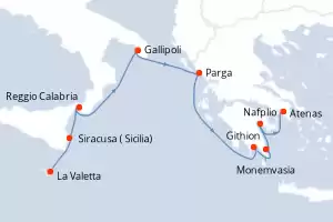 Grecia, Italia, Malta Itinerario: La Valetta , Siracusa ( Sicilia) , Reggio Calabria , Gallipoli , Parga , Githion , Monemvasia , Nafplio , El Pireo Atenas Comidas incluidas Le Bougainville 9 días Camarote balcón La Valetta 01/06/2026 desde US$6896 EL PRECIO NO INCLUYE LA PERCEPCIÓN DEL 30% DE AFIP - RG 5463 TARIFA NO REEMBOLSABLE Comidas incluidas Ver las ofertas