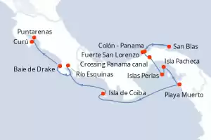 Costa Rica, Panamá Itinerario: Colón - Panama , Fuerte San Lorenzo , San Blas , Crossing Panama canal , Islas Perlas , Pacheca Island , Playa Muerto , Isla de Coiba , Rio Esquinas , Baie de Drake , Curú , Puntarenas Comidas incluidas Le Laperouse 11 días Camarote balcón Colón - Panama 19/12/2026 desde US$9117 EL PRECIO NO INCLUYE LA PERCEPCIÓN DEL 30% DE AFIP - RG 5463 TARIFA NO REEMBOLSABLE Comidas incluidas Ver las ofertas