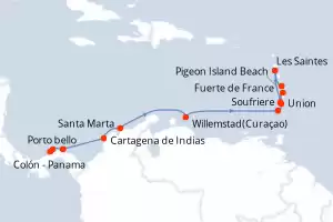 Santa Lucia, San Vincent y las Granadinas, Paises Bajos, Colombia, Panamá, Francia Itinerario: Colón - Panama , Porto bello , San Blas , Cartagena de Indias , Santa Marta , Bonaire , Mayreau , Union , Union , Pigeon Island Beach , Soufriere , Les Saintes , Fort-de-France Comidas incluidas Le Champlain 13 días Camarote balcón Colón - Panama 25/03/2026 desde US$8573 EL PRECIO NO INCLUYE LA PERCEPCIÓN DEL 30% DE AFIP - RG 5463 TARIFA NO REEMBOLSABLE Comidas incluidas Ver las ofertas