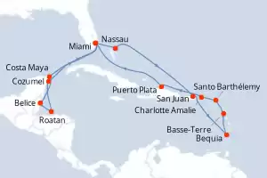 San Vincent y las Granadinas, Puerto Rico, Bahamas, Estados Unidos, México, Honduras, Belice, Francia, República Dominicana, Reino Unido Itinerario: Miami , Costa Maya , Belice , Roatan , Cozumel , Miami , Nassau , San Juan , Bequia , Basse-Terre (Guadalupe) , Santo Barthélemy , Charlotte Amalie , Puerto Plata , Miami Comidas incluidas Oceania Marina 18 días Camarote estándar Miami 20/12/2027 desde US$5396 EL PRECIO NO INCLUYE LA PERCEPCIÓN DEL 30% DE AFIP - RG 5463 TARIFA NO REEMBOLSABLE Comidas incluidas Ver las ofertas